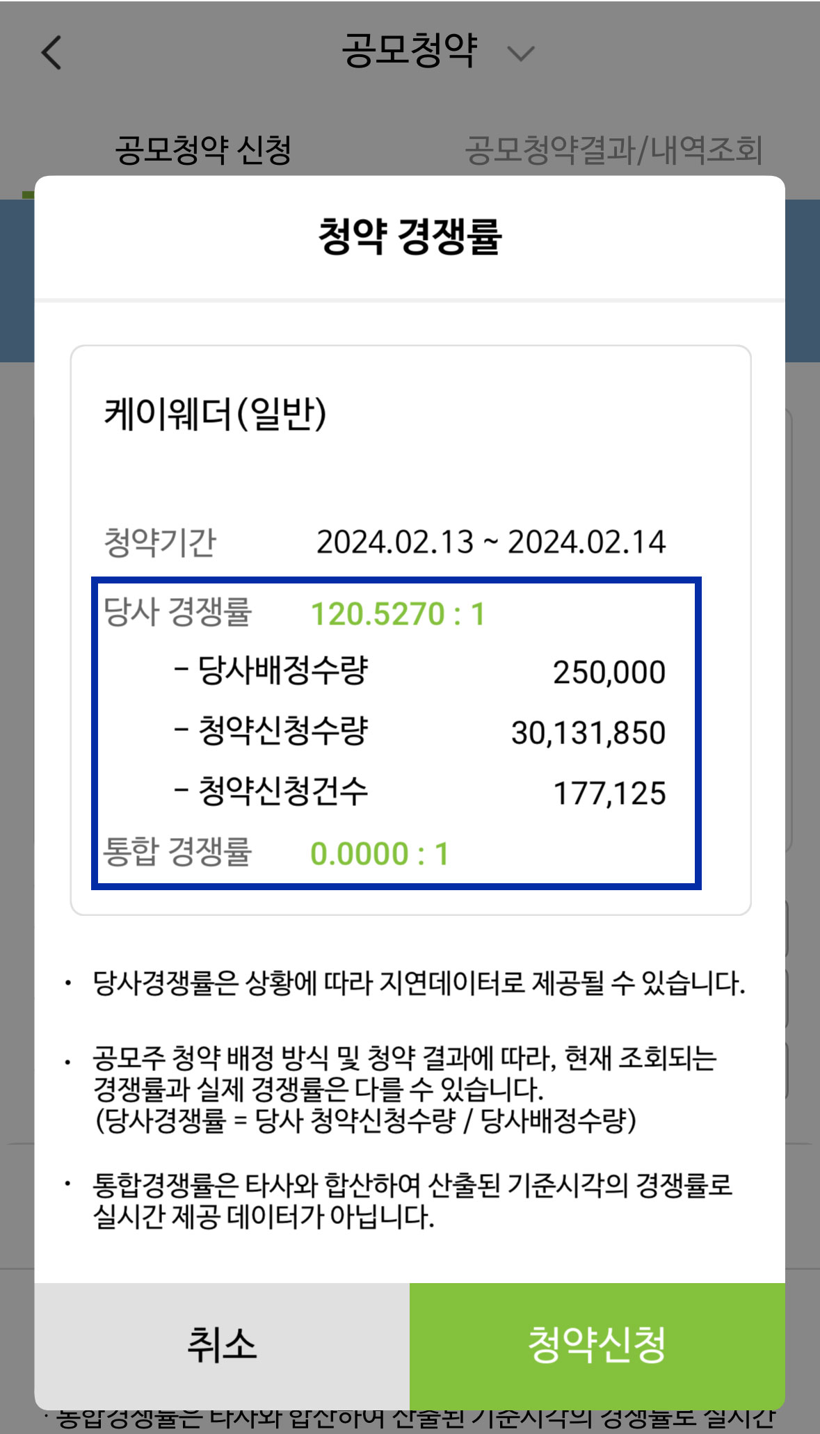 청약까지 마치고 나서 가장 궁금한 점은 아무래도 공모주 경쟁률과 균등 예상 배정 수량입니다. 청약 마지막날에 더 많이 몰리기 때문에 경쟁률도 보고 예상 배정 수량도 파악하는 건 크게 의미 없지만 아무래도 궁금해서 찾아보게 됩니다.