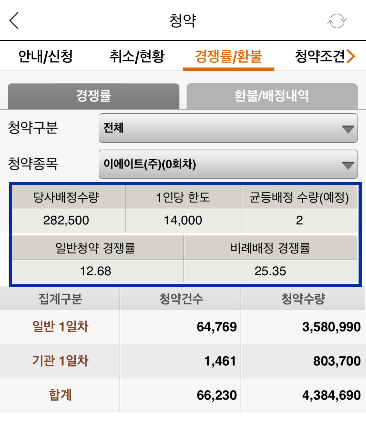 이에이트 1일 차 경쟁률 및 예상 배정 수량