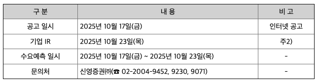 이번 공모주는 기술 특례 상장이라는 점과 상장 직후 유통 물량이 조금 있다는 점을 유의하셔야 합니다. 상장일에 단기 변동성이 있을 수 있습니다. 또한 청약을 원하시는 분들은 신영증권의 계좌를 청약 일정 4 영업일 이전에 개설을 완료해야 합니다.