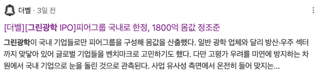 그린광학 공모주는 단순히 부품만을 생산하는 기업이 아니라 방위, 우주, 반도체 산업과 같은 첨단 산업의 공급사로 전문적인 기술력을 갖고 있는 기업입니다. 특히 유도무기 탐색기 광학계, 위성 반사경 등 국가 전략 산업과 연결되는 핵심 기술을 갖고 있다는 점이 강점입니다.