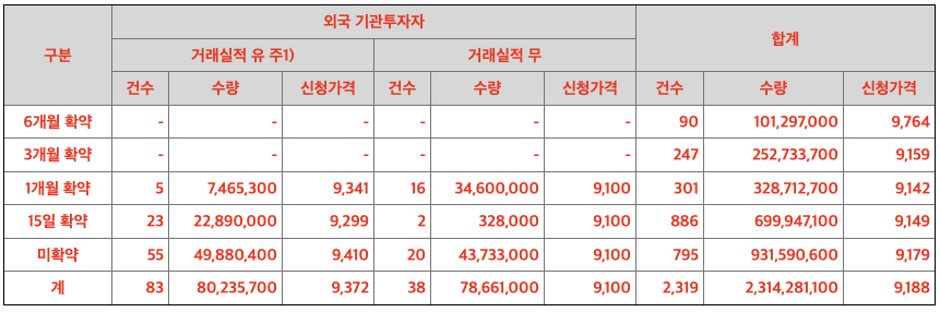 - 수량: 2,314,281,000 (외국 기관투자자 158,896,700건)