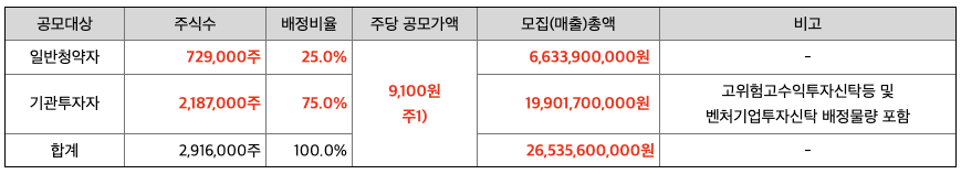- 희망 공모가 밴드: 7,600원 ~ 9,100원