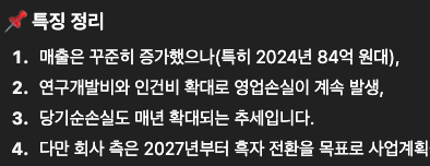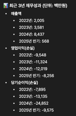 기술 기업 중에 영업 이익이 손실이 아닌 곳을 찾기 힘들지만, 그래도 공모주 청약 전 회사가 어떤 회사인지, 재무 상태는 어떤지 한번 확인하고 넘어가야 합니다. 만약 내가 청약을 했는데 손실이 났다면 이 버틸지 아니면 손실을 인정하고 나올지 결정할 때 그 회사에 대해서 어느 정도 알고 있느냐 없느냐에 따라 판단이 달라질 수 있기 때문입니다.