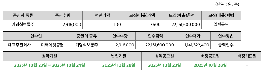 - 대표 주관사: 미래에셋증권