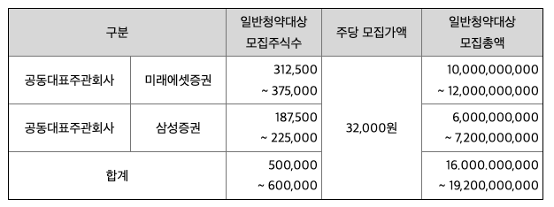 - 대표 주관사: 미래에셋증권, 삼성증권