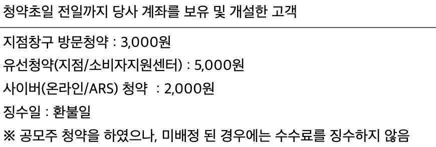 청약 수수료는 고객 등급에 따라 온라인 기준 건당 최대 2,000원, 영업점 청약 기준 건당 최대 5,000원이 부과된다고 합니다.