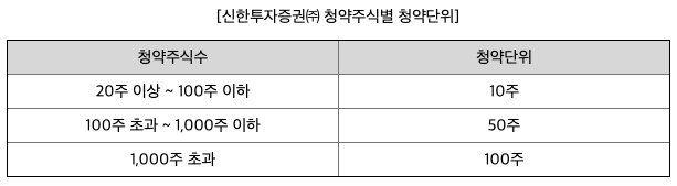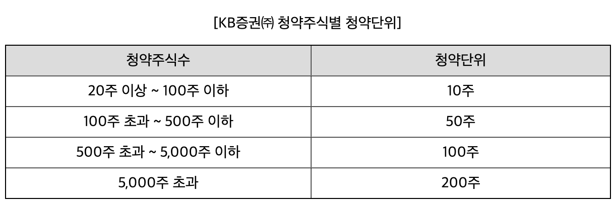각 증권사마다 청약 단위를 살펴보도록 하겠습니다. KB증권과 신한투자증권 모두 20주부터 청약해야 합니다. 희망 공모가 밴드 기준으로 보면 최소 청약 금액은 475,000원 ~ 568,000원입니다. 두 증권사의 청약 단위는 비슷하긴 하지만 KB증권이 5,000주 초과에 청약 단위를 200주로 추가한 것이 다릅니다. 청약 단위는 비례 배정을 받을 때 1주당 필요한 금액을 계산하기 위한 자료이기 때문에 청약 당일에 조금 더 자세히 알아보도록 하겠습니다.
