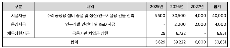 씨엠티엑스 공모주는 이번 공모 자금을 통해 시설 자금, 운영 자금, 채무상환 자금에 투자하겠다고 밝혔습니다. 시설 자금에는 설비 증설, 건물 신축 등이 있습니다. 주력 제품 자동화 및 생산 시설을 도입하고 노후 공정 라인을 보안하는데 투자한다고 합니다.