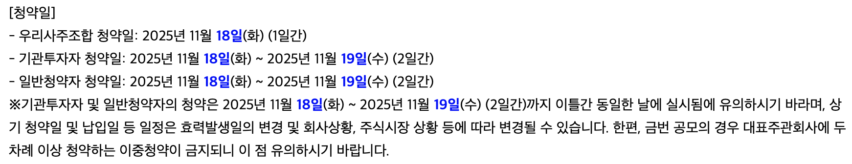 - 청약일정: 2025년 11월 18일 ~ 11월 19일