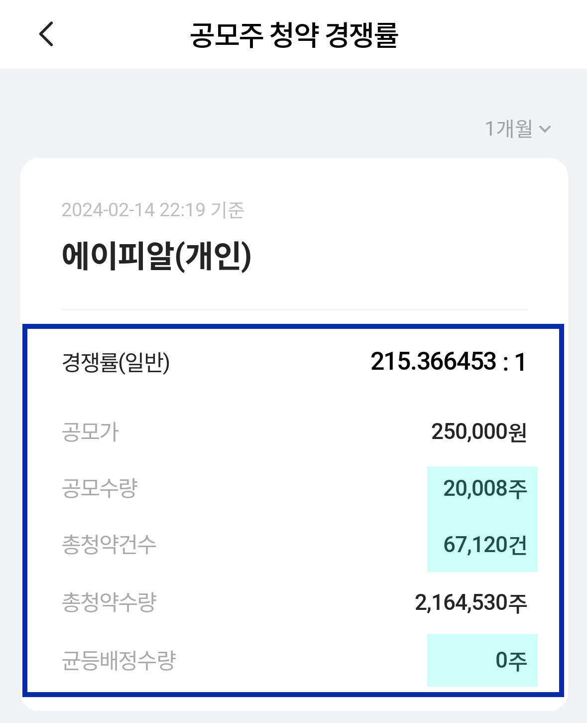 에이피알 공모주 1일 차 경쟁률, 균등 예상 물량