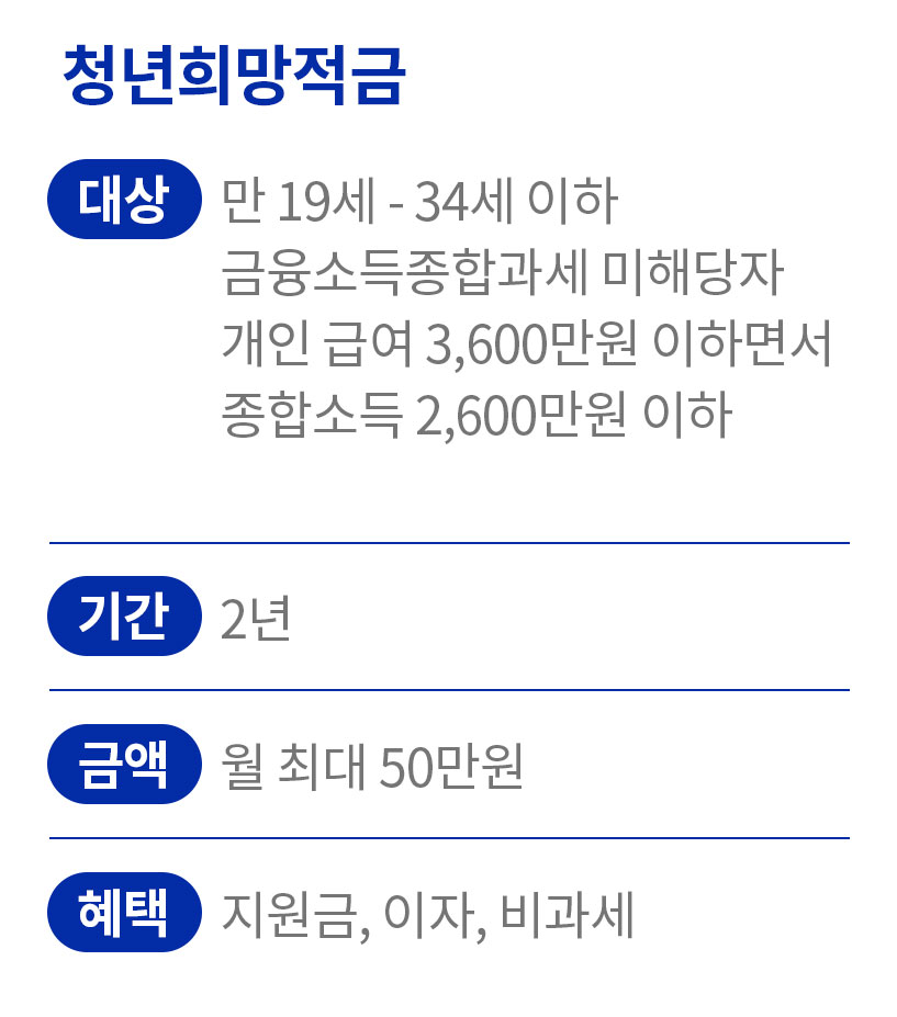 청년희망적금이 만기 되고 나서 별다른 적금 계획이 없거나 다른 비과세 혜택 계좌를 갖고 있지 않으신 분들이라면 괜찮은 것 같습니다. 청년도약계좌 가입 조건에 해당하시는 분들이라면 다음 달 가입 기간까지 아직 시간이 많이 있기 때문에 은행별 우대 금리도 잘 비교해 보시고 가입하시길 바라겠습니다.