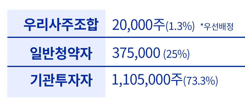일반 청약자 대상 25% 물량을 청약할 예정이며, 주관사는 한국투자증권입니다. 코칩 공모주 청약을 원하시는 분은 내일 24일부터 25일까지 한국투자증권에서 청약이 가능합니다(메뉴 - 자산, 뱅킹 - 청약 - 공모주/실권주 청약 메뉴 클릭).