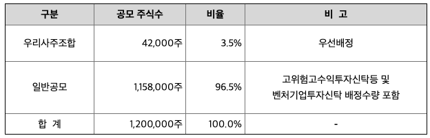 큐리오시스 공모주는 이번 청약에서 우리 사주조합 공모주를 우선 배정하고 나머지 96.5%는 일반 공모로 모집합니다. 보통 공모주는 25~30% 정도를 일반 청약자에게 배정하고 이 범위에서 다시 균등 배정과 비례 배정으로 나누어서 청약 금액에 따라 공모주를 줍니다.