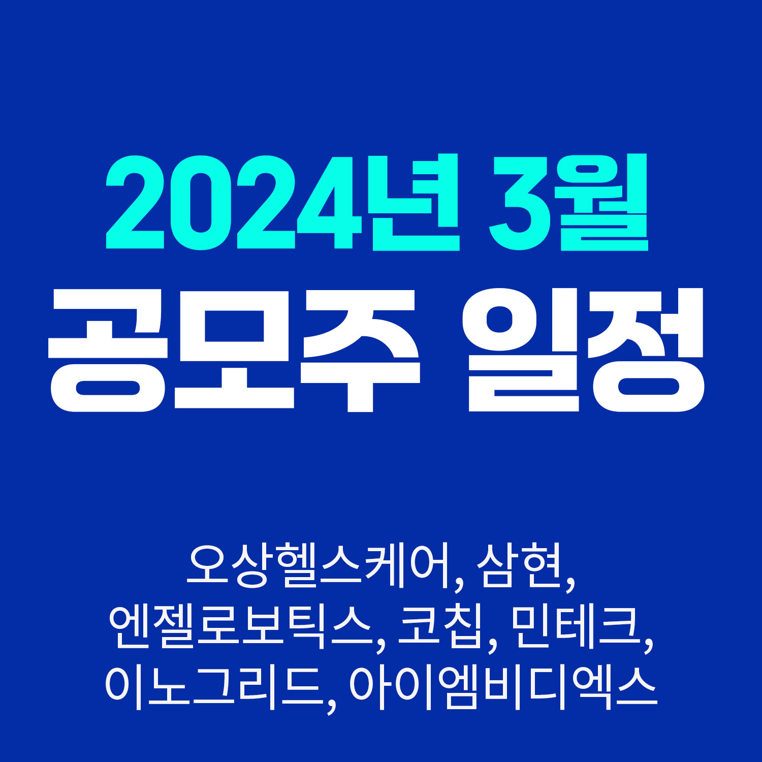 내일 공모주 청약을 시작하는 오상헬스케어를 시작으로 삼현, 엔젤로보틱스, 코칩, 민테크, 이노그리드, 아이엠비디엑스 이렇게 총 7개의 공모주가 청약 일정이 있다고 밝혔습니다. 수요예측 결과를 포함한 증권신고서가 모두 올라오기 전이기 때문에, 대략적인 정보와 함께 일정을 자세히 알아보도록 하겠습니다.
