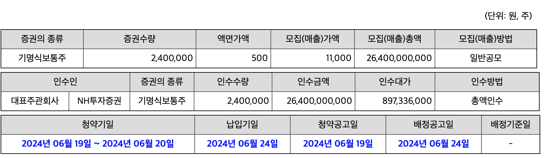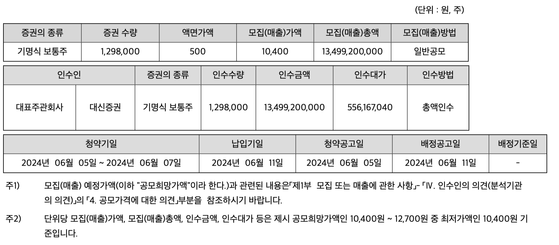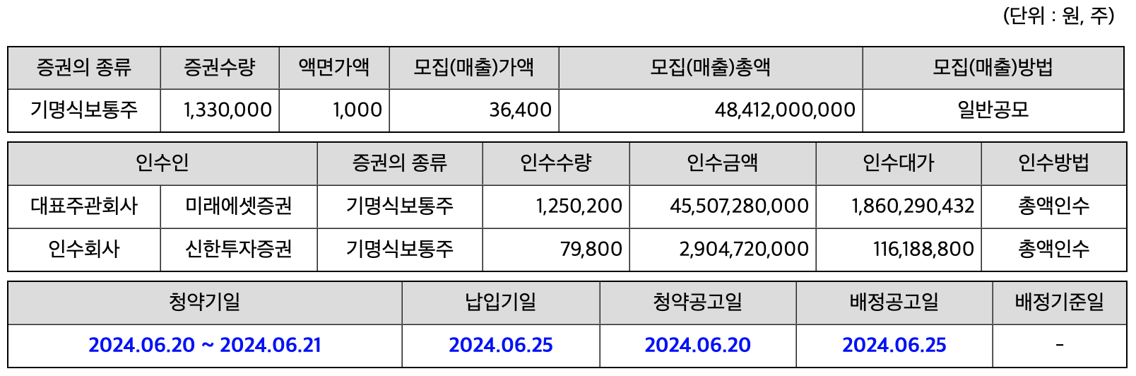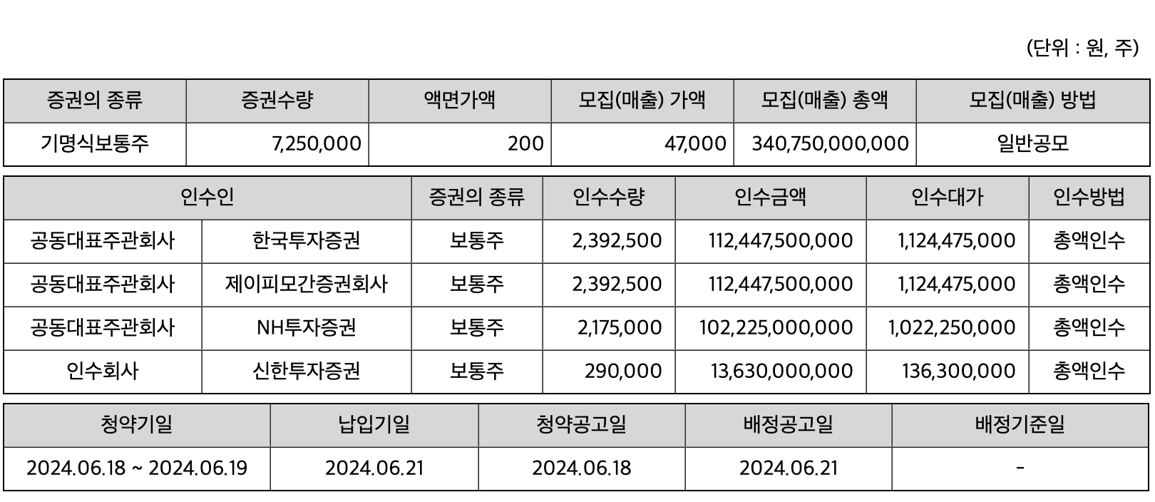 - 주관사 : 한국투자증권, NH투자증권, 신한투자증권