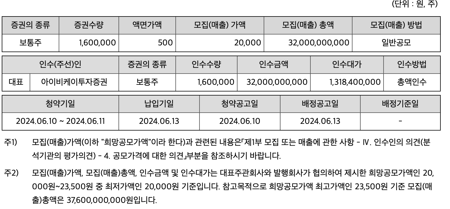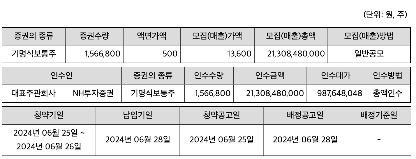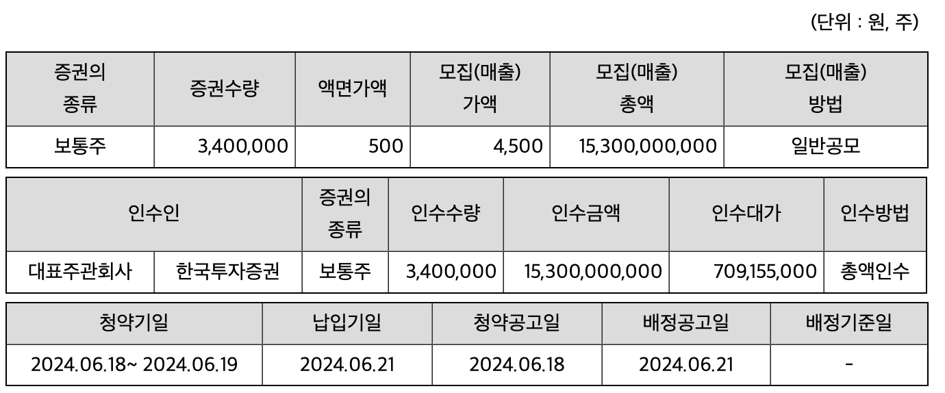 - 공모주 청약 일정 : 2024년 6월 3일(월) ~ 4일(화)