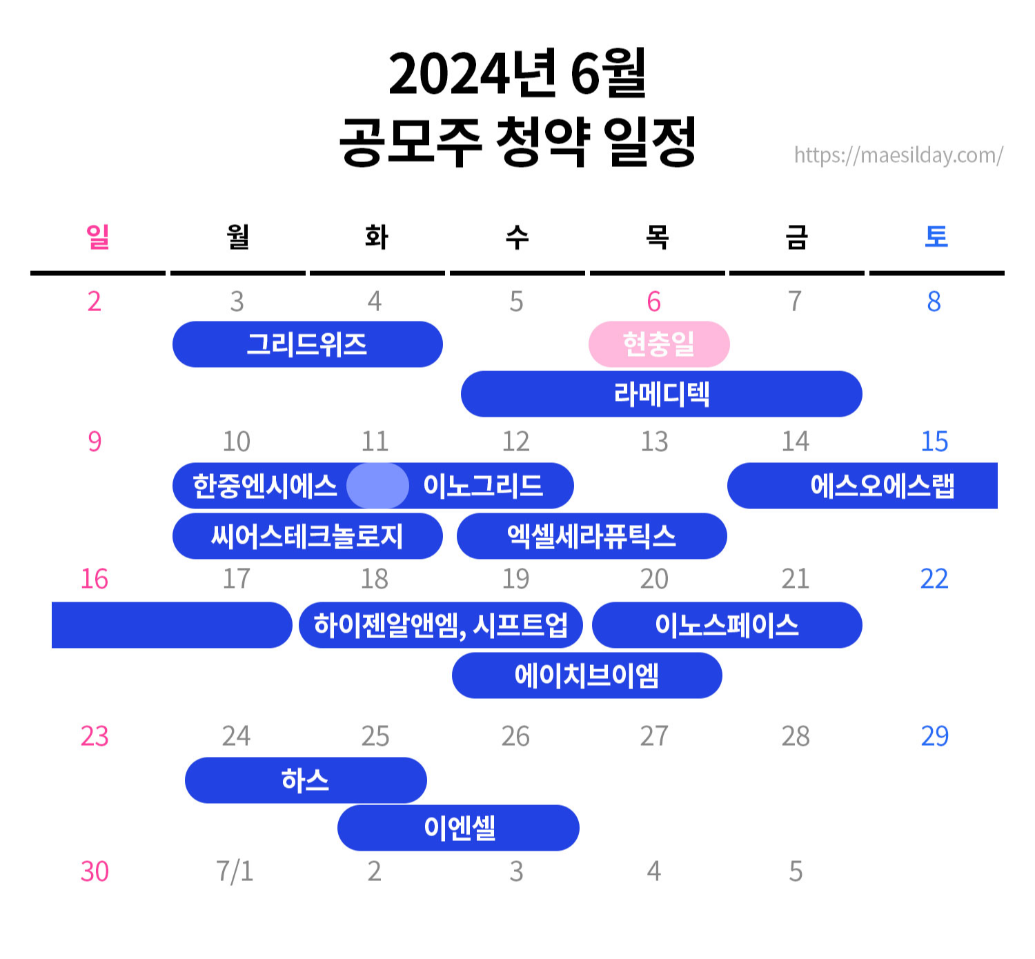 2024년 6월 공모주 청약일정 캘린더