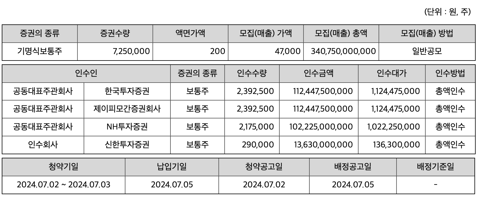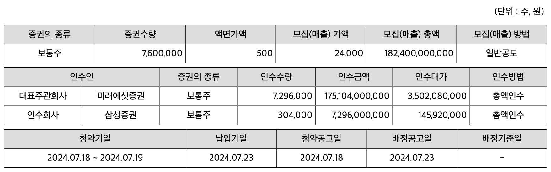 수익도 수익이지만 제가 직접 전자공시도 살펴보고 자료 정리를 해가면서 선택한 공모주였기 때문에 더 기분이 좋았던 것 같습니다. 하반기에도 꾸준히 기록을 해두면서 실력을 쌓아나가도록 하겠습니다. 그 시작으로 오늘은 2024년 7월 공모주 청약일정을 정리해 보도록 하겠습니다.