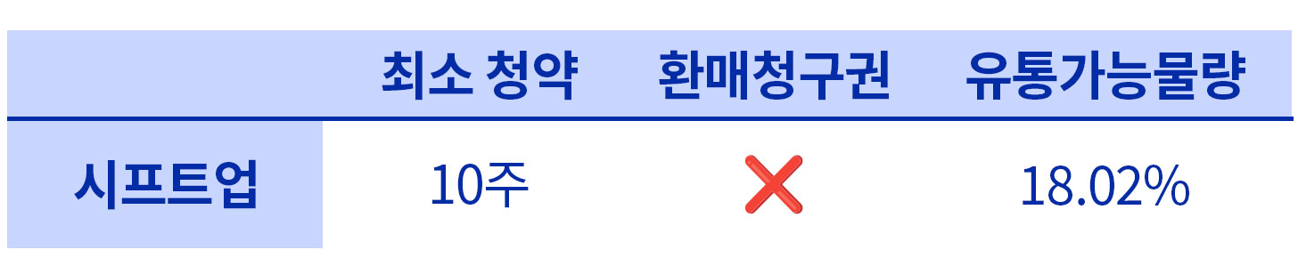 시프트업의 최소 청약 수량은 10주입니다. 균등 배정 물량을 생각하신다면 10주에 해당하는 금액의 50%가 증거금으로 필요합니다. 이번 공모주는 환매 청구권이 부여되지 않으며 상장일에 유통 가능한 물량은 18.02%입니다. 2024년 7월 공모주 청약일정은 겹치는 부분이 주마다 있는데, 시프트업 청약 마지막날에는 엑셀세라퓨틱스 공모주 청약이 시작되니 두 곳 모두 청약 예정이신 분들은 어디에 더 투자를 할지 한번 더 체크해 보시는 편이 좋을 것 같습니다.