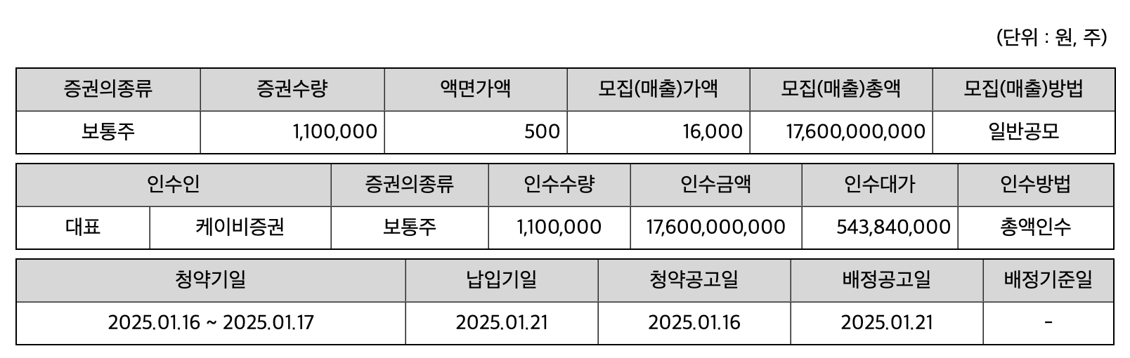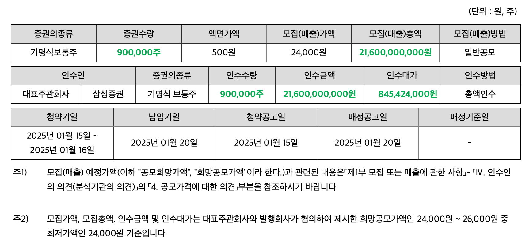 청약일정은 15일부터 16일이며, 주말이 있어서 배정 공고일은 4일 뒤인 20일입니다. 청약을 원하시는 분은 삼성증권에서 가능하며 희망 공모가 밴드는 24,000원 ~ 26,000원입니다.