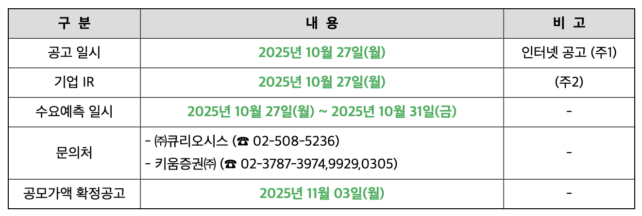[큐리오시스 공모주 청약 요약]