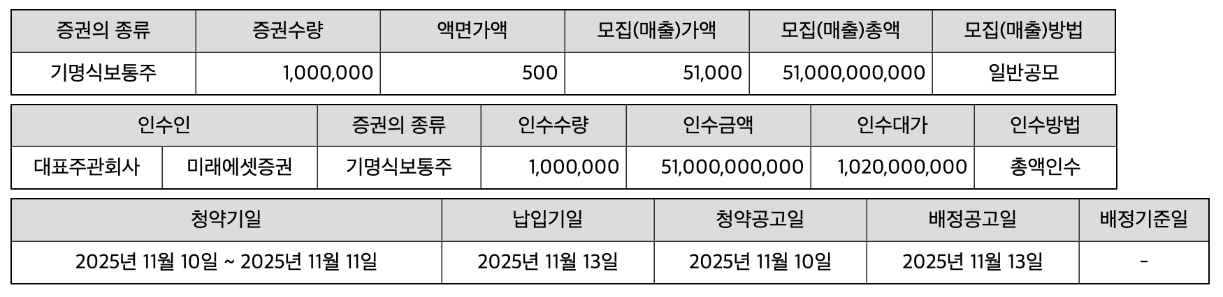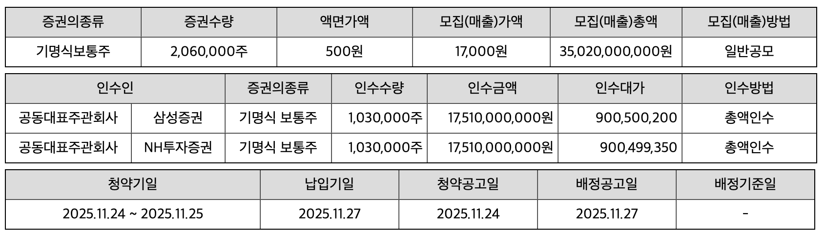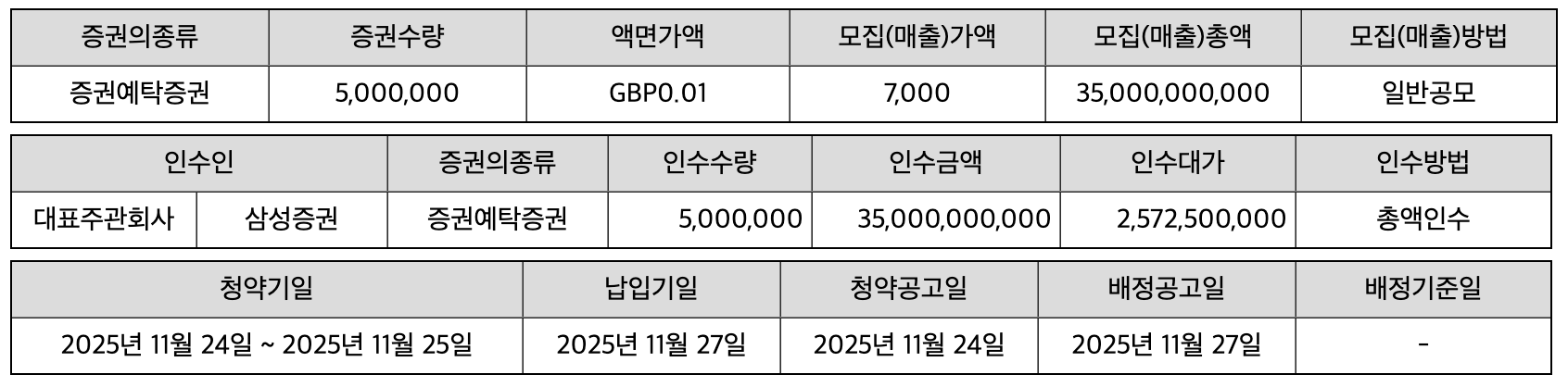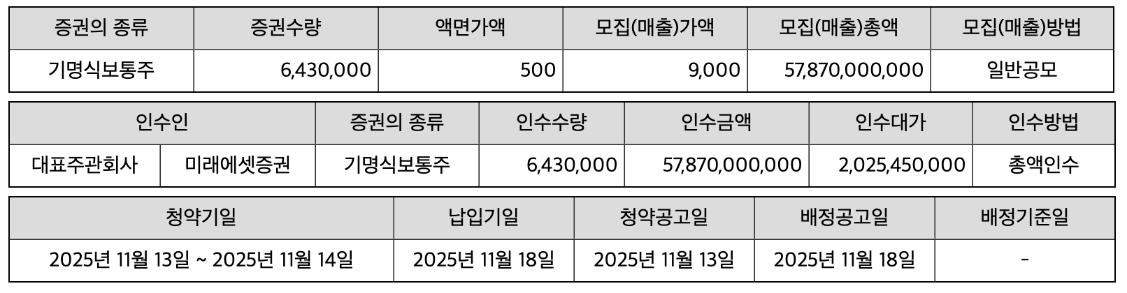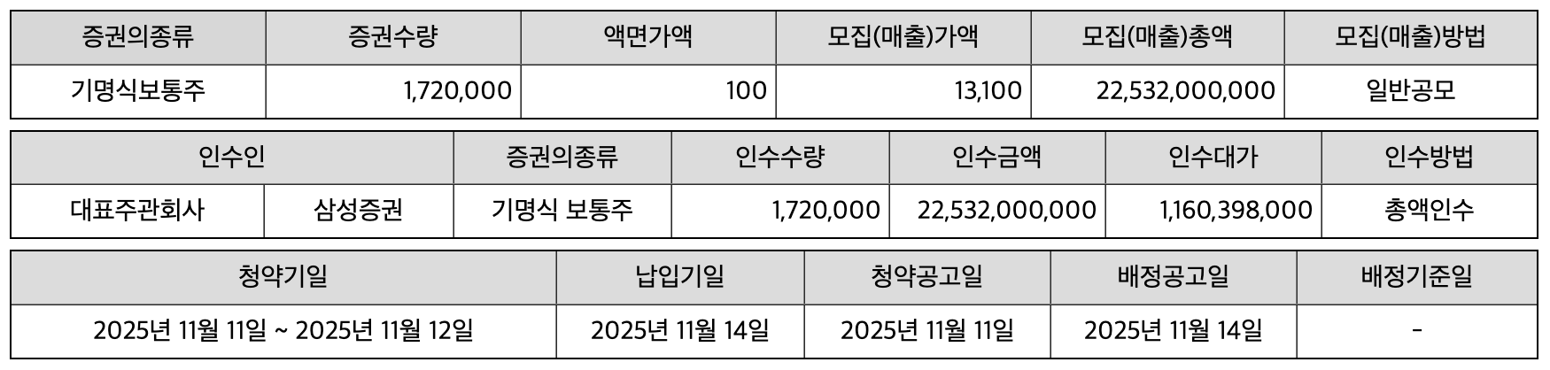 - 주관사: 미래에셋증권, 삼성증권