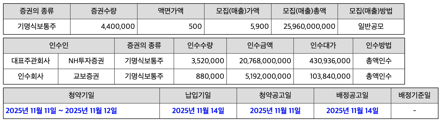 - 주관사: NH투자증권, 교보증권