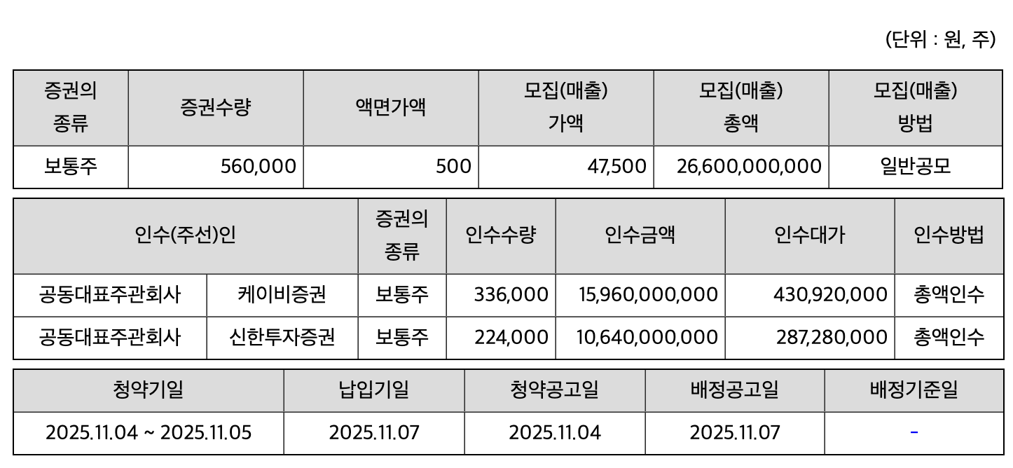 - 주관사: KB증권, 신한투자증권