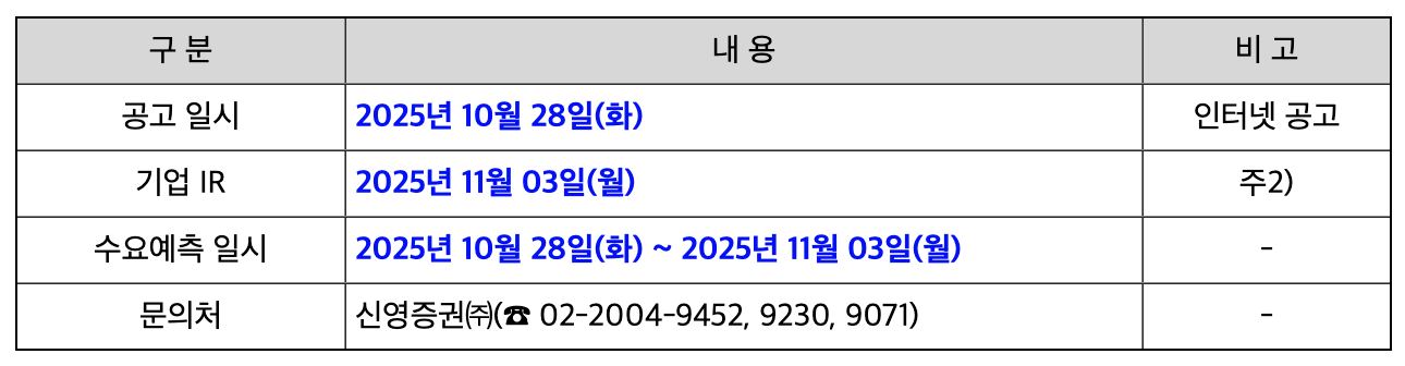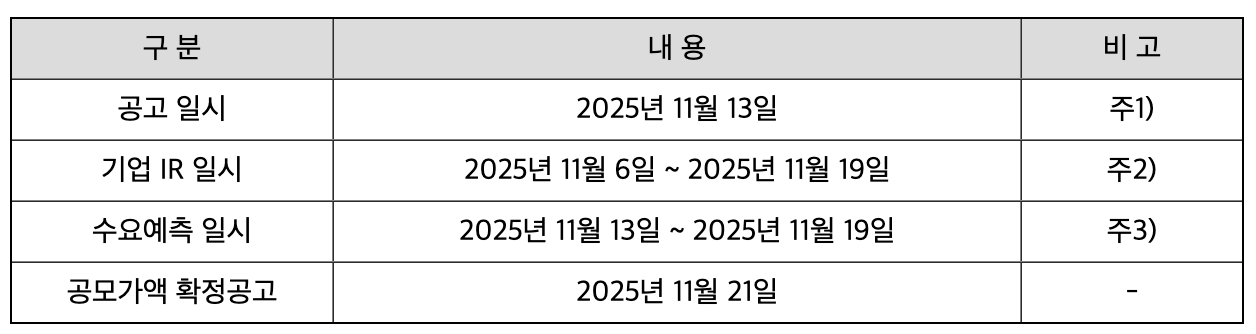 10월에는 정말 긴 추석 연휴가 있었습니다. 그러다 보니 공모주 청약일정이 다른 달보다 많이 부족했던 것 같습니다. 9월에 살펴봤을 때도 많이 없다고 생각했는데, 이후 청약 일정이 뒤로 밀리거나 사라지면서 청약할 수 있는 것들이 거의 없다시피 했던 것 같아요. 하지만 다행히 2025년 11월 공모주 청약일정은 그런 저희의 아쉬움을 달래줄만큼 많이 있습니다. 이름을 들어본 것 같은 공모주도 있어서 가뭄 같았던 공모주 청약일정에 활기가 조금 생기지 않을까 생각합니다. 오늘은 11월 공모주 청약일정을 수요예측일과 함께 살펴보며 정리해 보도록 하겠습니다. 공모주 수가 꽤 있는 편이라 오늘은 이야기가 길지 않을까 싶어요. 되도록 핵심만 살펴볼 수 있도록 하겠습니다.