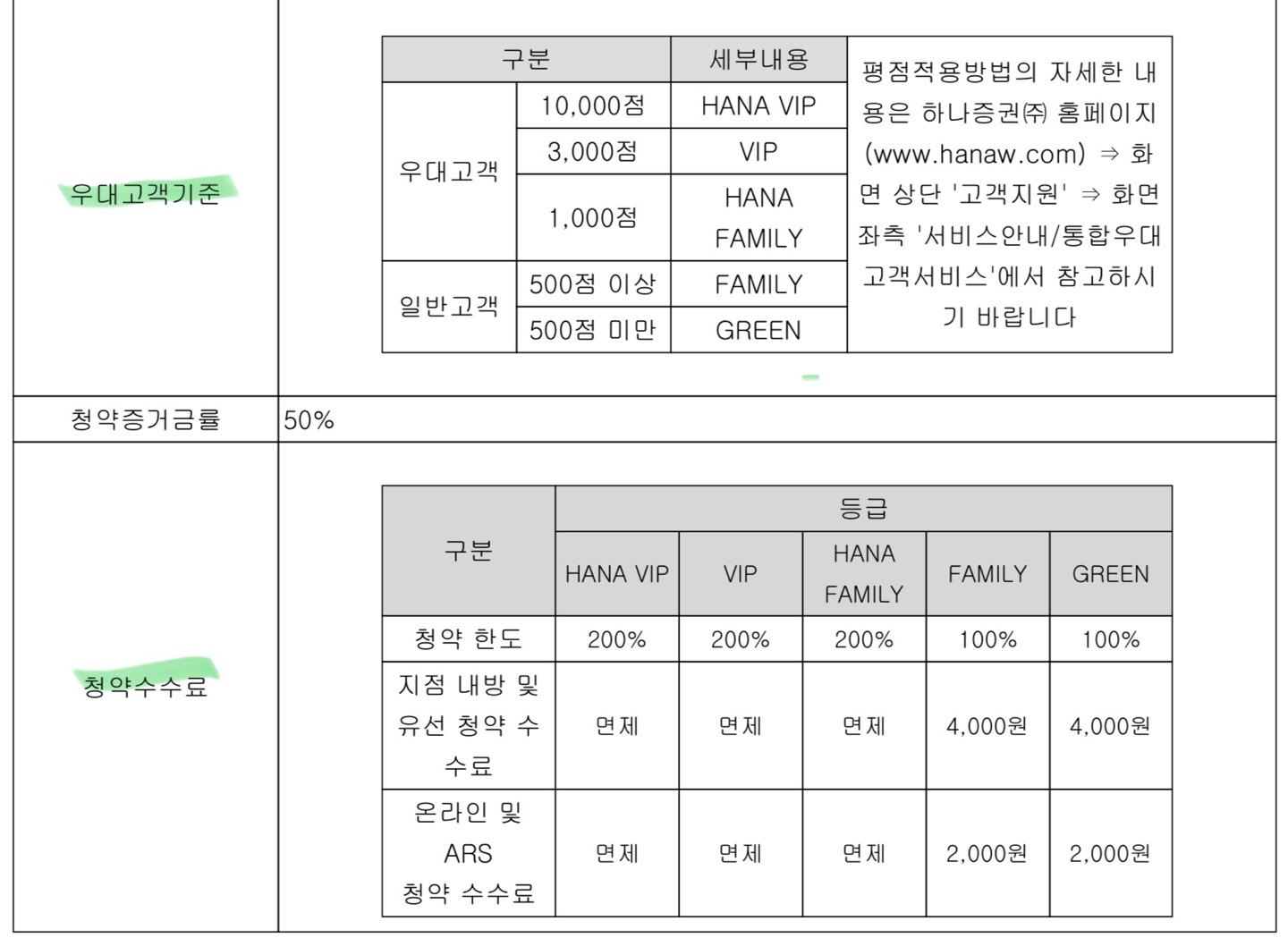 마지막으로 하나증권입니다. 비대면으로 개설된 계좌와 근거계좌를 통해 만들어진 온라인 상품 계좌는 청약 당일에도 개설 후 공모주 청약이 가능하지만 그렇지 않은 경우라면 LG CNS 청약일 이전까지 계좌가 있어야 합니다. 우대 고객 기준은 하나증권 홈페이지에서 확인 가능하며, 고객 등급에 따라 청약 수수료가 상이하니 청약 이전에 하나증권 고객 등급을 확인하셔야 할 것 같습니다.