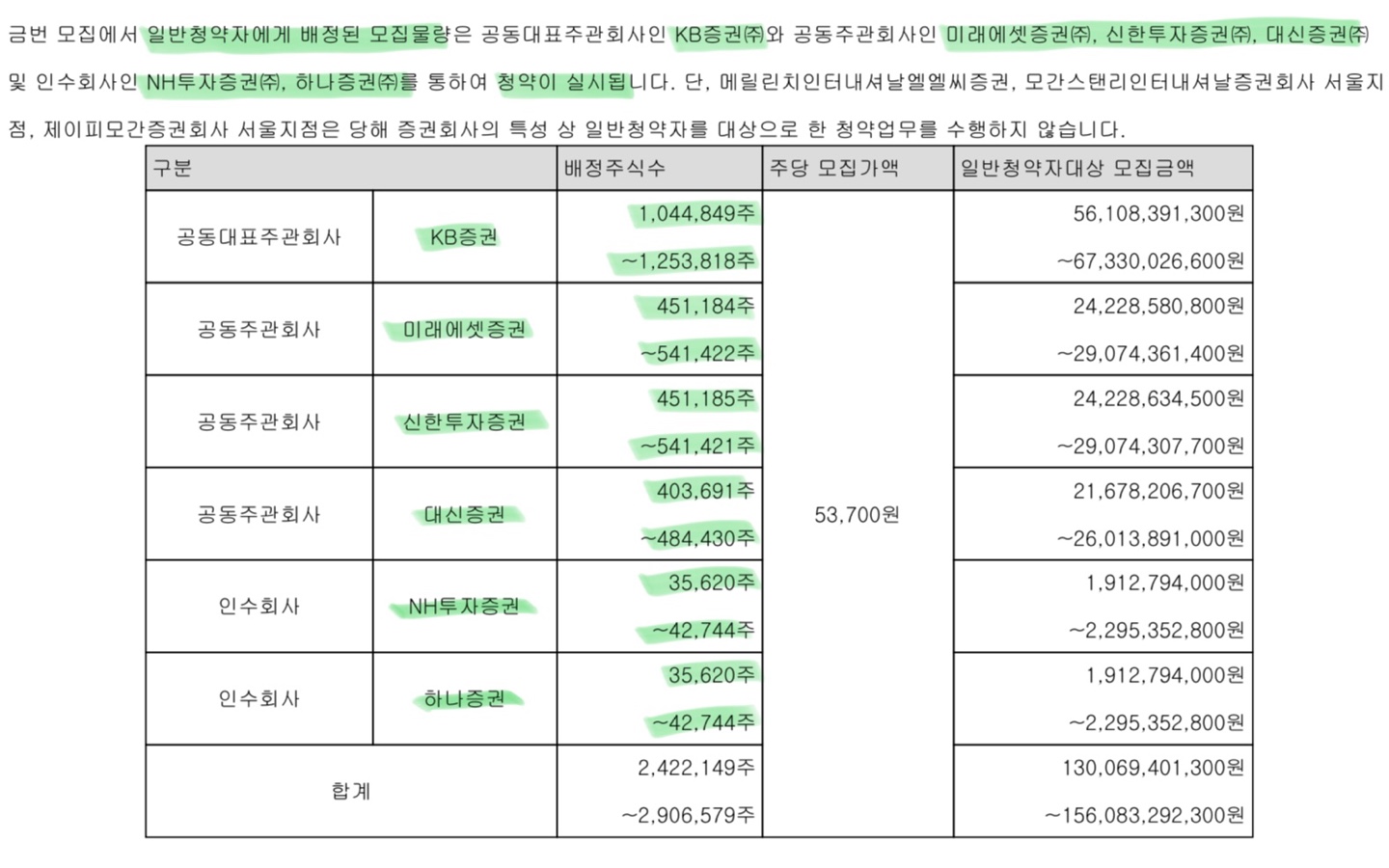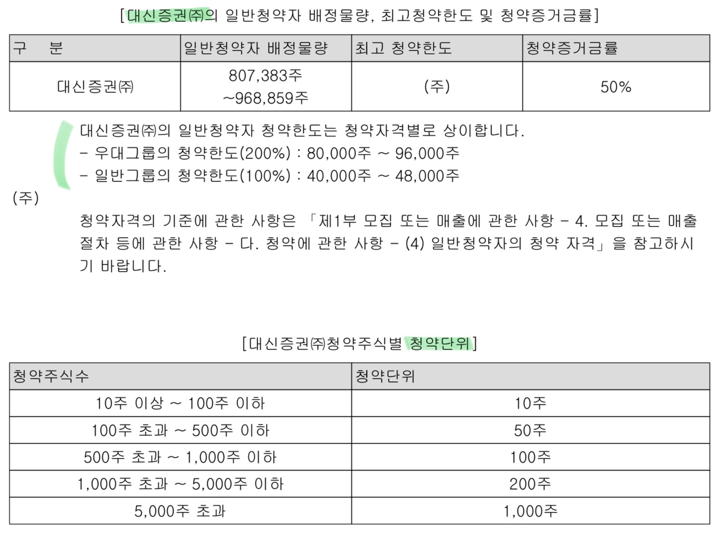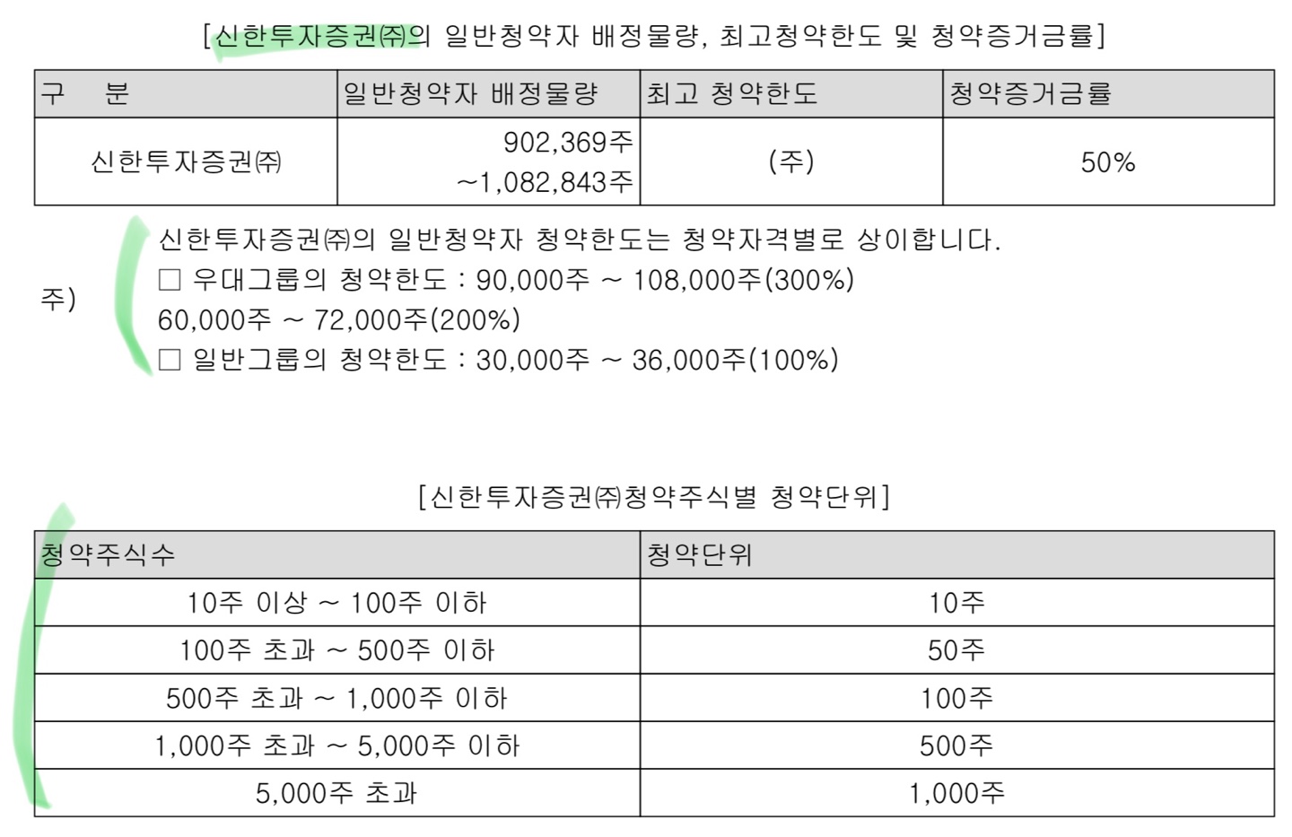 주관사별 청약 한도