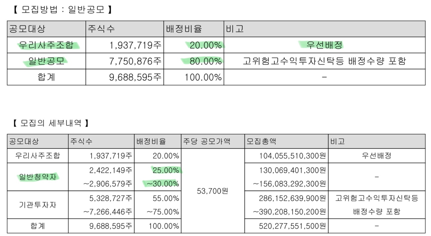 LG CNS는 우리 사주조합에 20% 우선 배정됩니다. 우리 사주 청약은 일반청약자들이 청약하는 날보다 하루 전날에 이뤄지는데, 이때 배정 물량에 따라 일반 청약자분들의 배정 수량이 더 늘어날 수도 있습니다. 현재 일반 청약자 물량은 전자공시 기준으로 25~30% 정도 예정입니다. 공모주 청약에서 배정 물량이나 자신의 증권사 고객 등급 한계 때문에 원하는 만큼 청약을 하지 못한 경우라면, LG CNS 상장 이후에 일반 주식처럼 매매가 가능하니 미리 재무나 사업 내용에 대해서 확인하는 편도 좋을 것 같습니다.