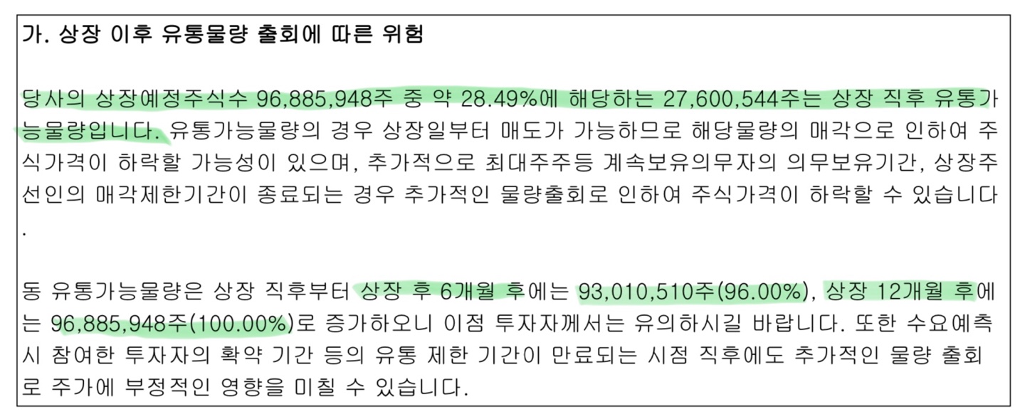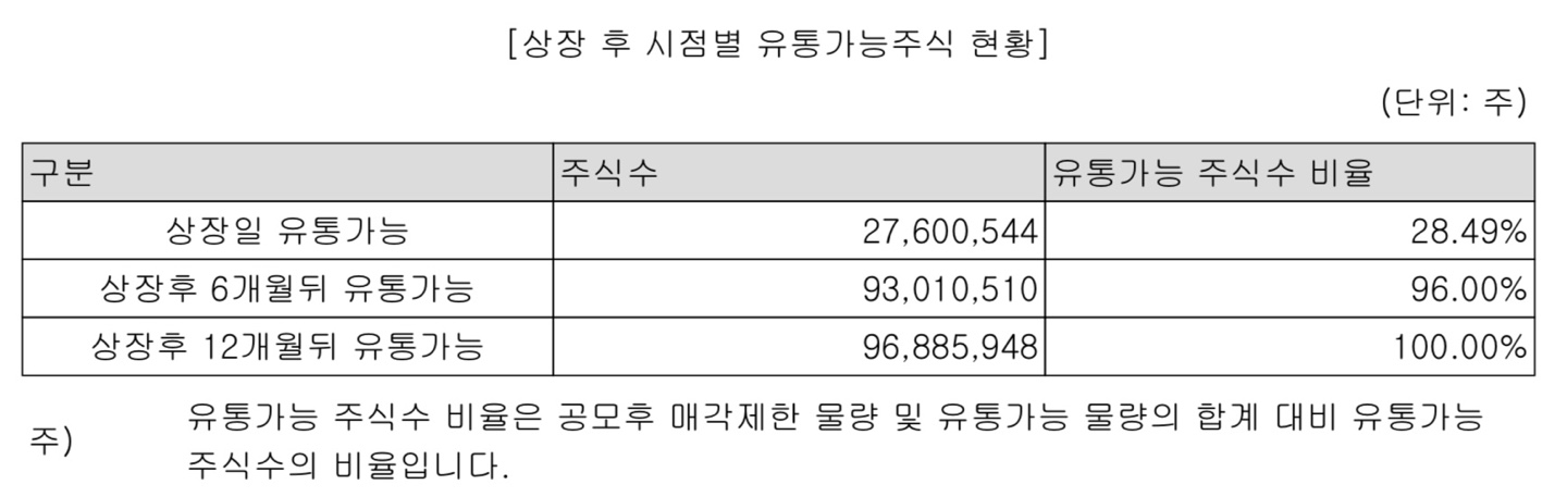 LG CNS 상장 이후 주가의 변동 영향은 유통 가능 물량도 한몫합니다. 상장일에 유통 가능한 물량이 많으면 그만큼 매도할 수 있는 주식이 많다는 이야기이기 때문입니다. LG CNS는 전자공시 기준으로 상장 직후 28.49%의 주식이 유통될 예정입니다.